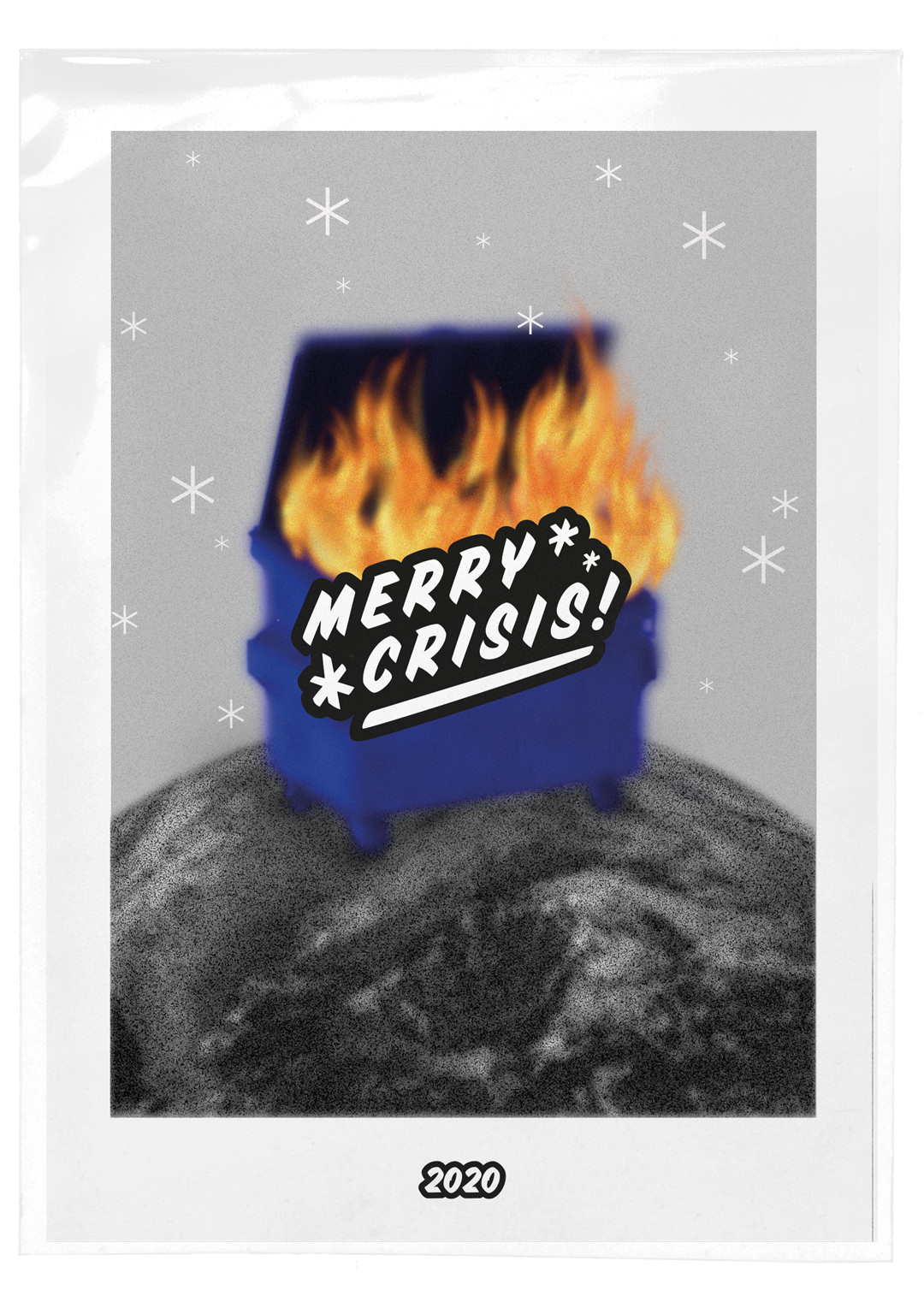 With looming news of increasingly dodgy global politics, the pandemic, and every other disaster this year has thrown at us let’s celebrate the clashing with the joyous holiday season with Holiday Cards that match the occasion. Merry Crisis!