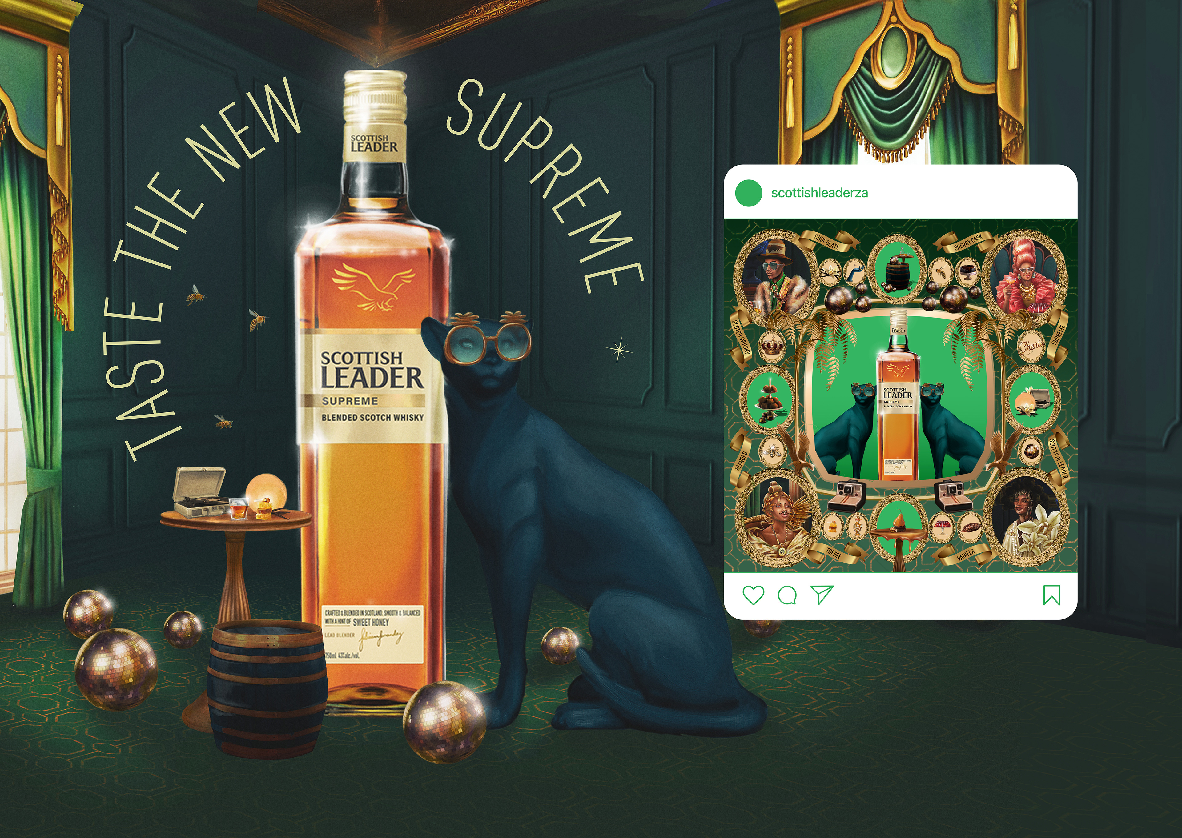 Launch Scottish Leader’s new Supreme Sherry Cask Whisky and defy whisky norms by flipping classical opulence on its head.